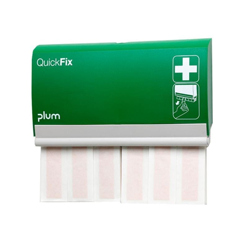 QuickFix Plum pleisterdispenser geschikt voor 2 vullingen. Gevuld met elastische lange  pleisters.